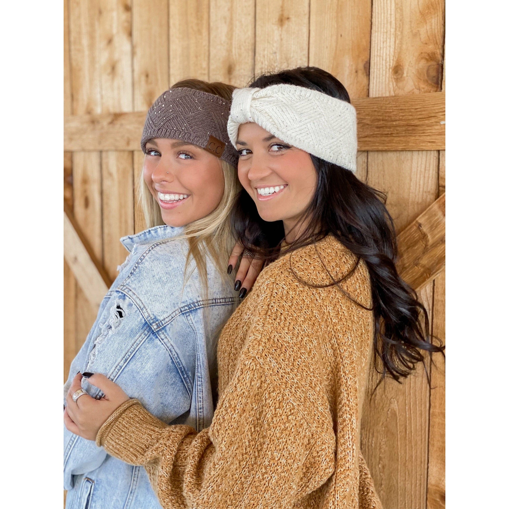 Sequin Brioche Cable Knit C.C Fashion Headband: Cream