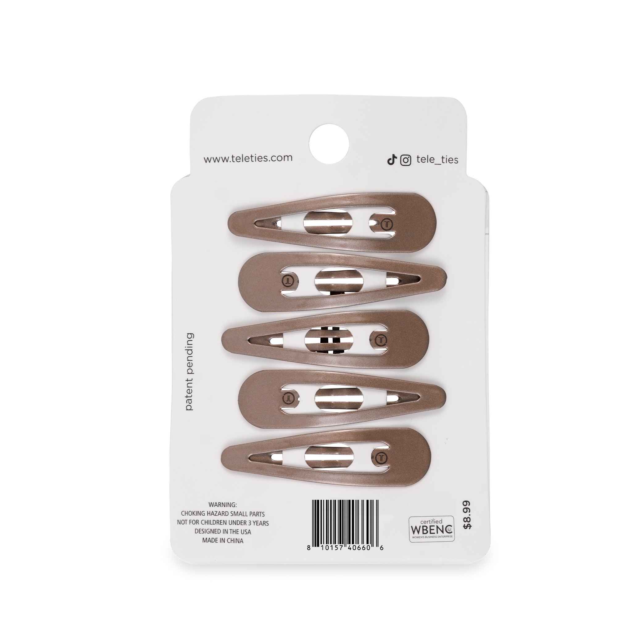 TELETIES Truly Taupe Snap Clips (6Ct) in Taupe offer a secure seamless tip for a no snag feel. Perfect for all hair types, these stylish barrettes provide a gentle yet firm hold, whether you're styling or simply pulling back strands. Available in a range of colors, TELETIES Snap Clips combine functionality with flair, ensuring your hair stays put all day long. Sold in packs of Six