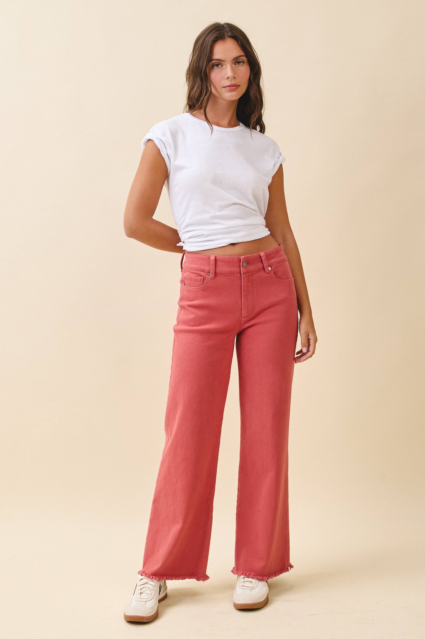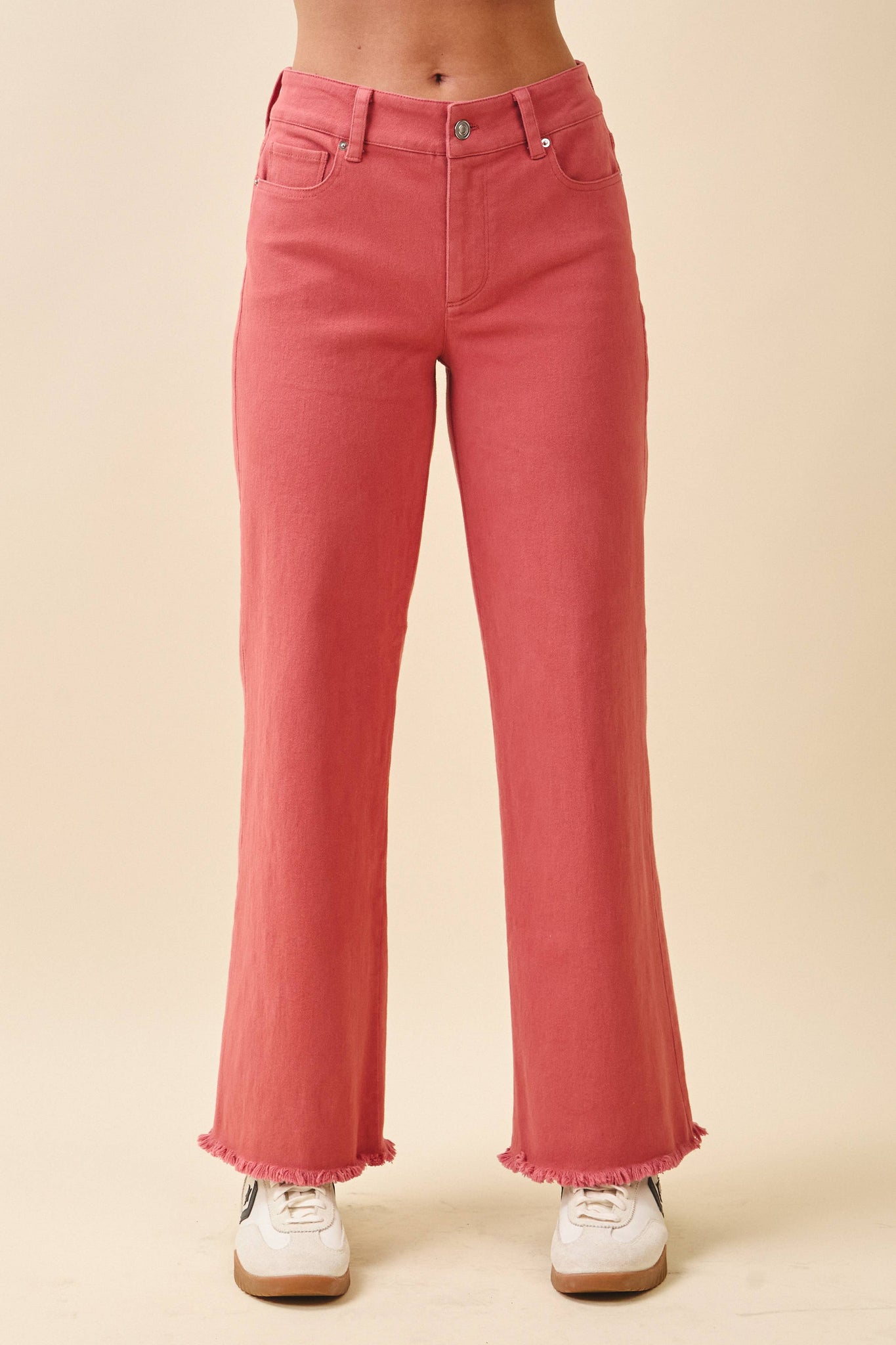 A modern twist on a classic cut—these wide leg jeans feature clean lines, a flattering high-rise fit, and raw fringe hems for a lived-in edge. Effortlessly cool and made to move with you, they’re the pair you’ll reach for again and again.
