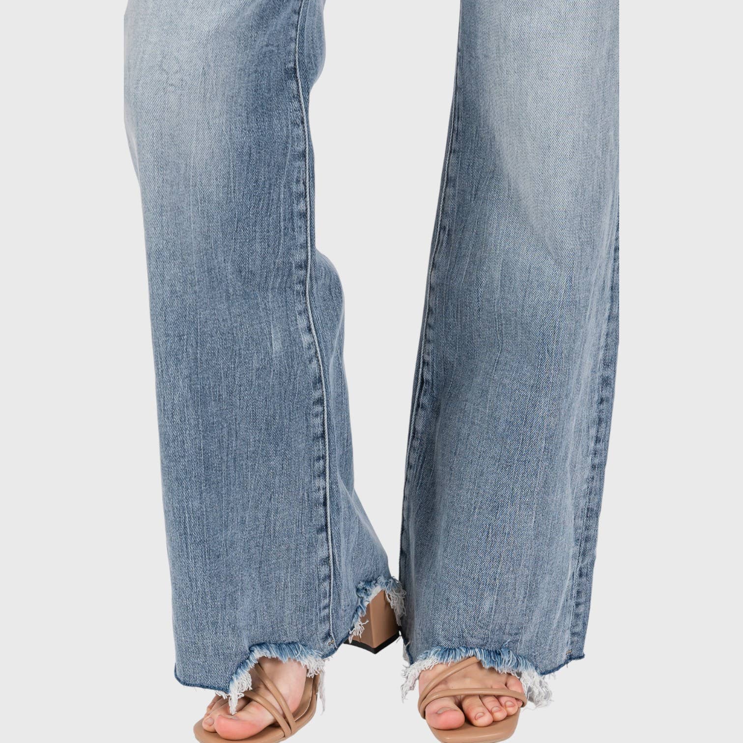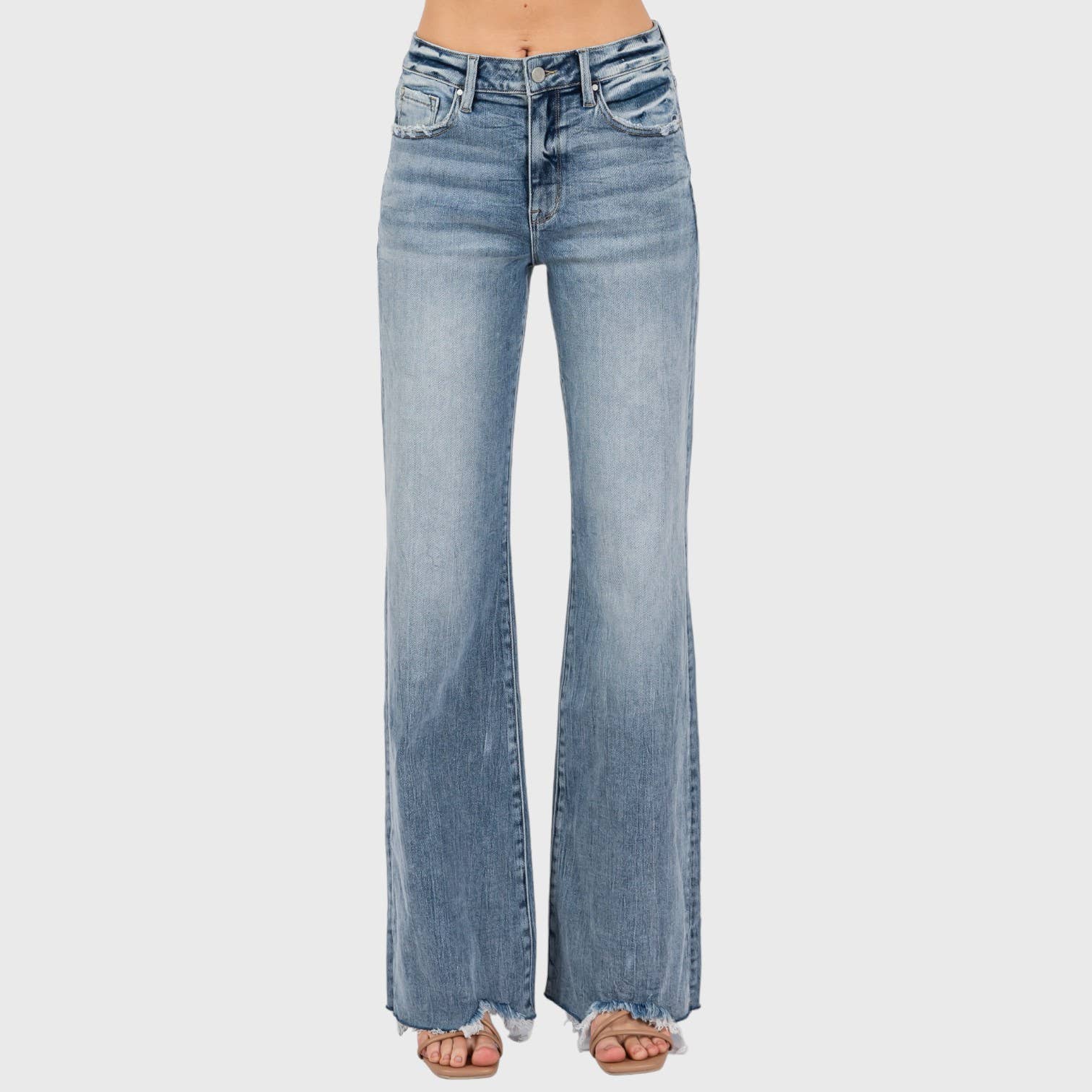 HIGH RISE STRETCH VINTAGE FLARE W/ FRAYED HEM
