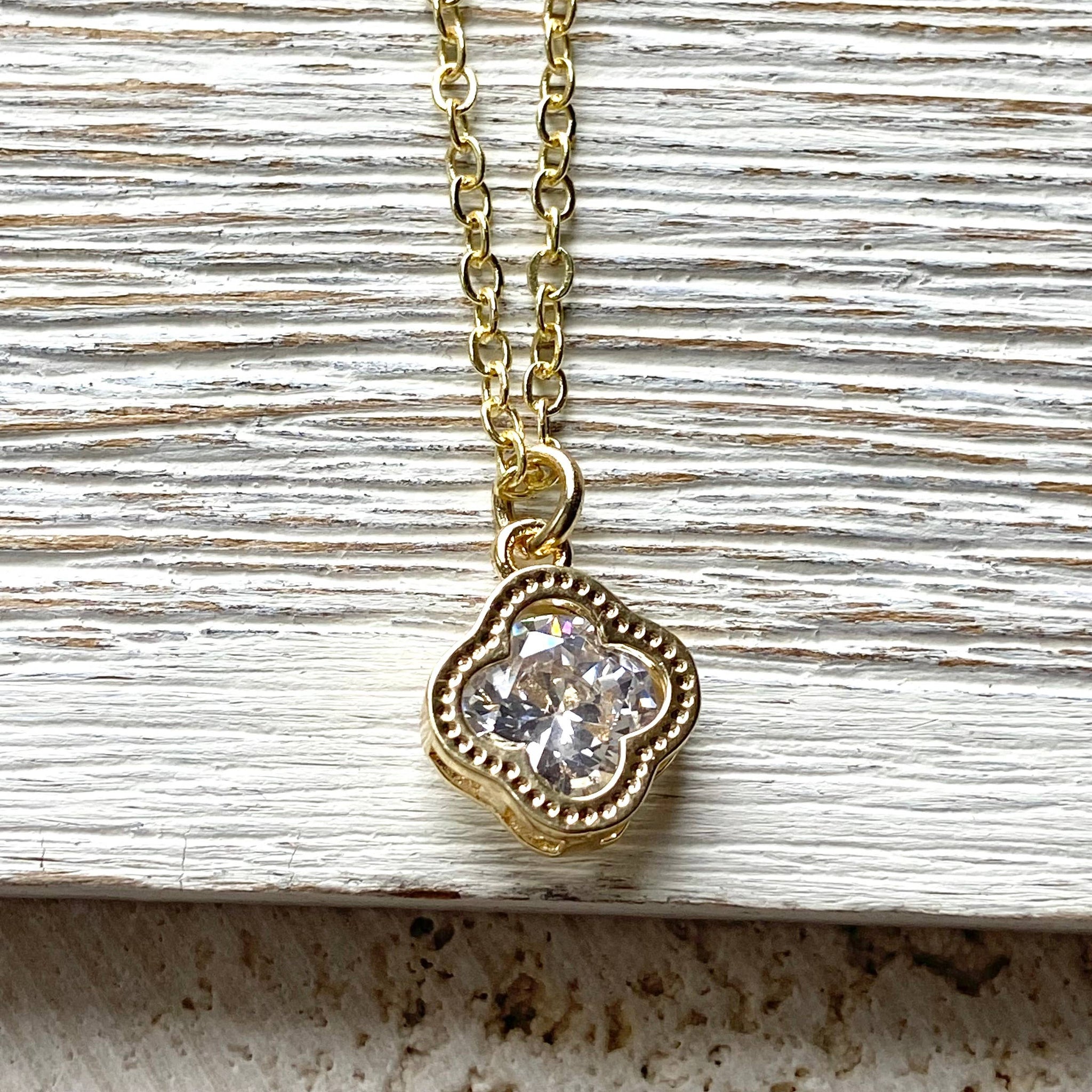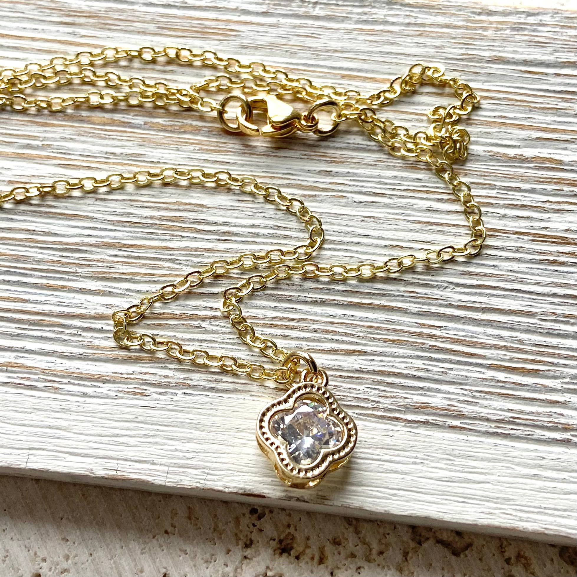 This dainty charm necklace features a very sparkly clover. It’s great to wear alone or layer it up. Stainless steel non-tarnishing chain choose your length Studio Notes: W